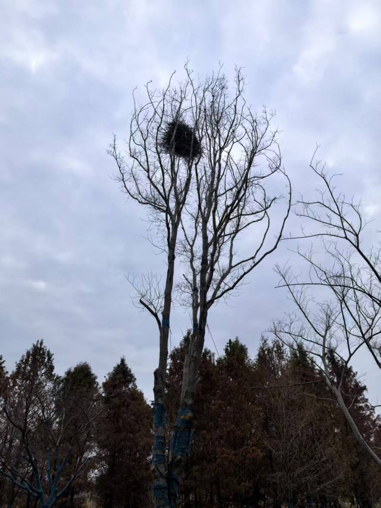 骑行途中湖面波光粼粼,路边绿化很好,见到很多巨大无比的鸟窝。